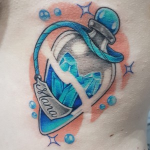 Pur essendo una tatuatrice versatile, gli stili che prediligo sono il cartoon e il kawaii. Adoro lavorare con i colori e con questi stili posso esprimermi al meglio. Ho avuto il piacere di partecipare a qualche Convention e uno dei miei obiettivi futuri è sicuramente quello di tornare a farle.