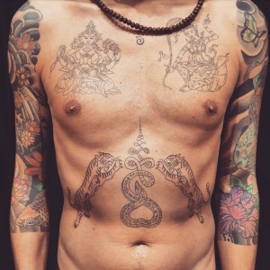 Nel 2012 mi sono recata in Thailandia per farmi tatuare da un monaco per studiare parte della sua arte sacra.