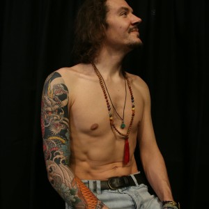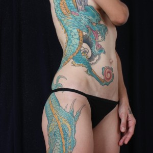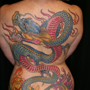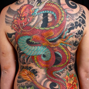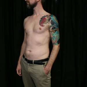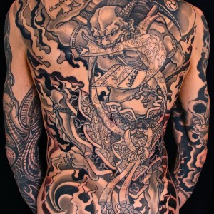Di nuovo l’arte orientale si presentava nel mondo del tatuaggio, il tatuaggio giapponese era considerato la forma più elevata che poteva rappresentare il tatuaggio. Così per comprenderla mi recai in Giappone nel 1995 dal più grande maestro vivente: Horiyoshi di Yokohama, terzo della sua dinastia. Il maestro mi tatuò completamente la schiena in due mesi, usando la tecnica tradizionale. Da allora mi specializzai nel tatuaggio tradizionale giapponse, l’Irezumi, approfondendo sempre di più la simbologia legata alla millenaria cultura giapponese."